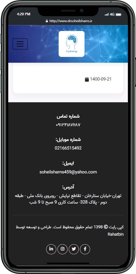 سایت معرفی یکی از پرطرفدارترین مدل های طراحی سایت است. دلیل درخواست زیاد این نوع سایت ها این است که بسیاری از مشاغل به دنبال راهی برای معرفی کسب و کار خود به دیگران هستند. با طراحی وبسایت معرفی این نیازشان برطرف میشود و مخاطبان محصول و خدمات خود را پیدا میکنند. اگر میخواهید دایره مشتریان و مخاطبان شما بزرگ تر شود پیشنهاد ما به شما داشتن یک وب سایت معرفی است. نمونه کار سایت معرفی دکتر سهیل شمس توسط تیم برنامه نویسی راحت بین در پایین قابل مشاهده میباشد: