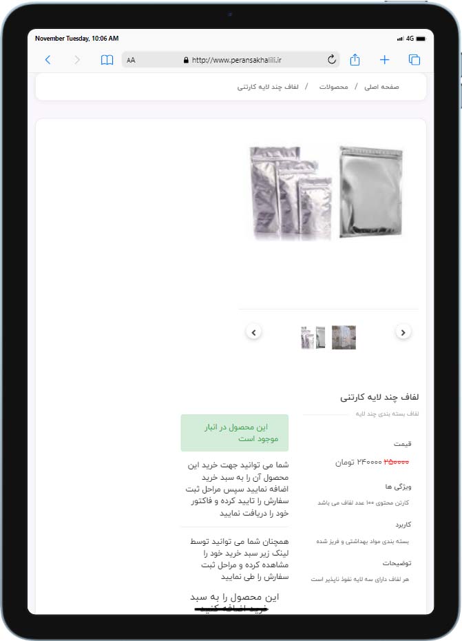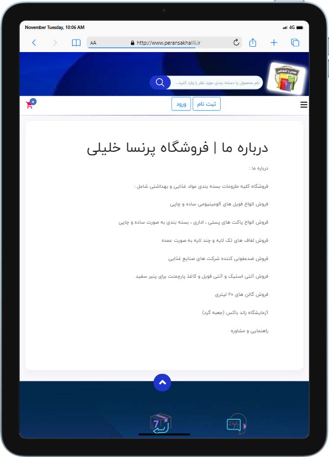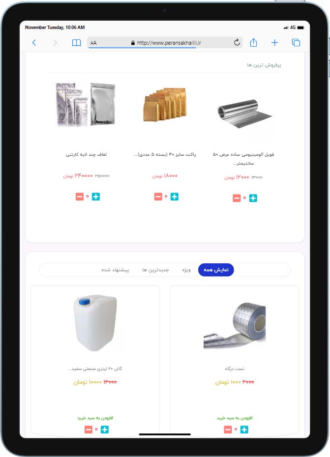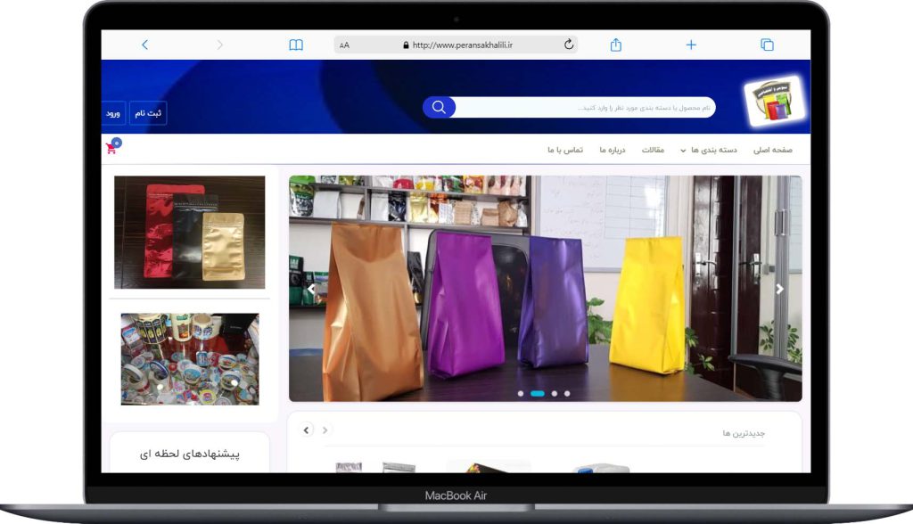 نمونه کار طراحی سایت فروشگاهی ملزومات بسته بندی و ضد عفونی پرنسا خلیلی