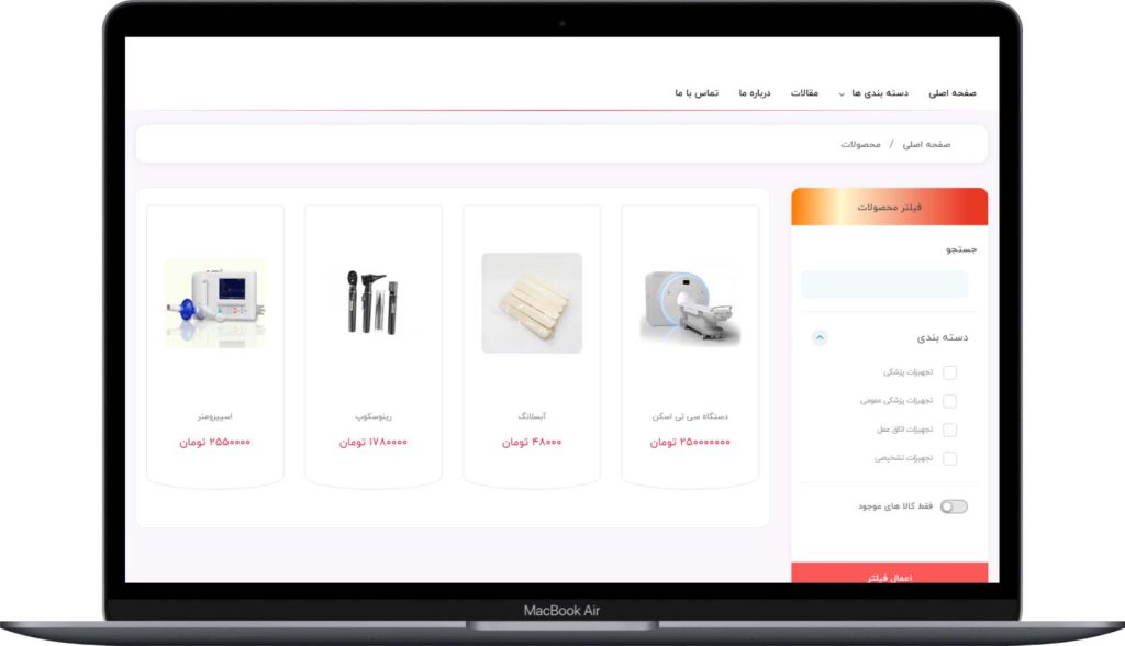 نمونه کار طراحی سایت تجهیزات پزشکی