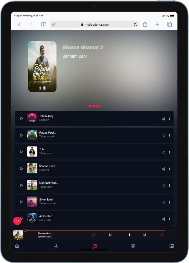 یکی از بهترین وبسایت های پخش آهنگ های روز و قدیمی است. با عضویت در آن میتوان به تمامی آهنگهای ایرانی و خارجی دست پیدا کرد. همچنین برای راحتی بیشتر میتوانید اپ مربوطه را از گوگل پلی یا اپل استور دانلود کنید تا همیشه به آن دسترسی داشته باشید.