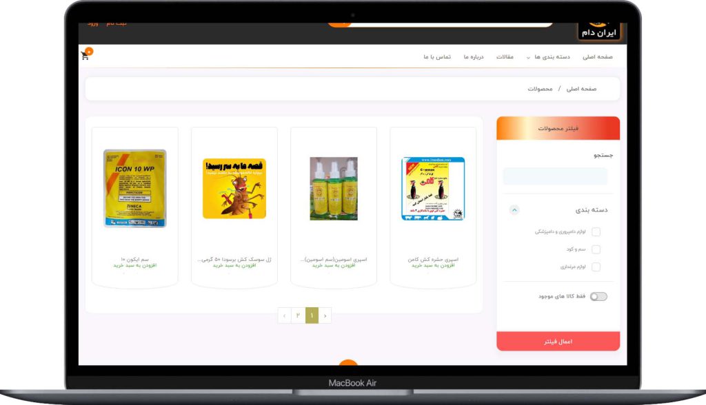 نمونه کار طراحی سایت فروشگاهی لوازم دامی کشاورزی