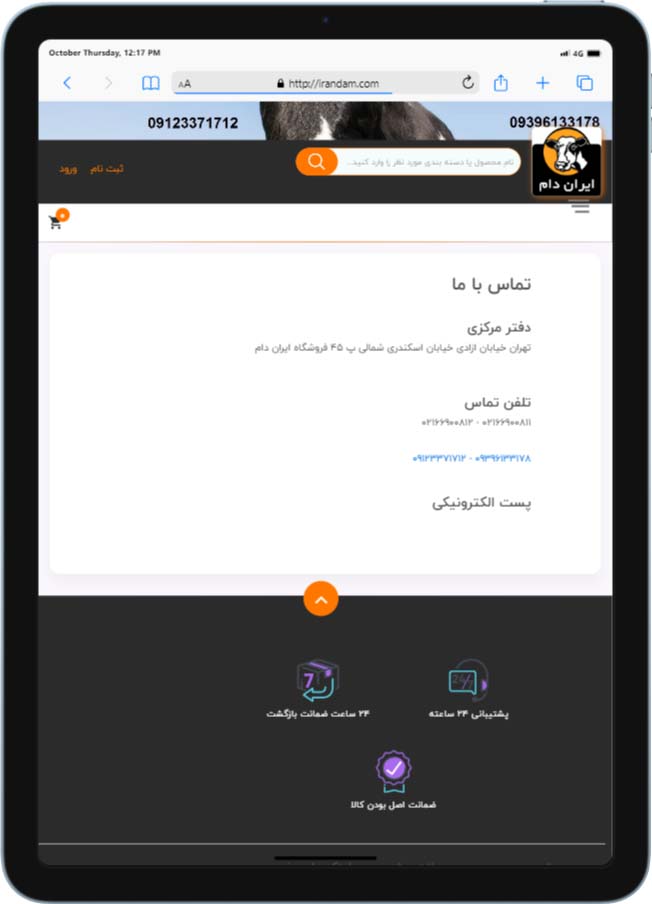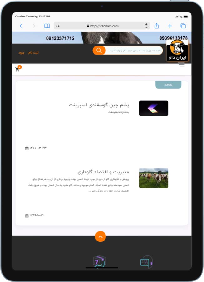 نمونه کار طراحی سایت ایران دام، یکی دیگر از سایت های طراحی شده توسط تیم راحت بین میباشد. حوزه فعالیت این وبسایت فروش کلیه لوازم مربوط به دامداری و دامپروری و کشاورزی است. اگر کسب و کار شما هم در این زمینه است ما میتوانیم برای شما بهترین سایت حرفه ای را طراحی کنیم. در این روزها بدون داشتن یک وب سایت نمیتوانید وارد چرخه رقابت با رقبای خود شوید. پس درست ترین تصمیم داشتن آنلاین کردن کسب و کارتان است. در زیر چند نمونه کار طراحی سایت فروشگاه ایران دان قابل مشاهده است: