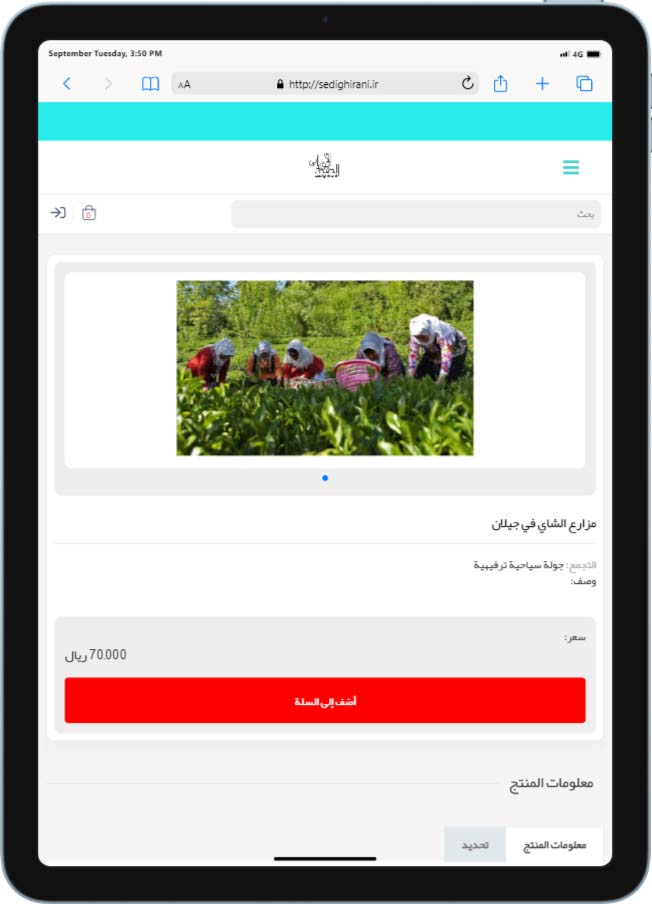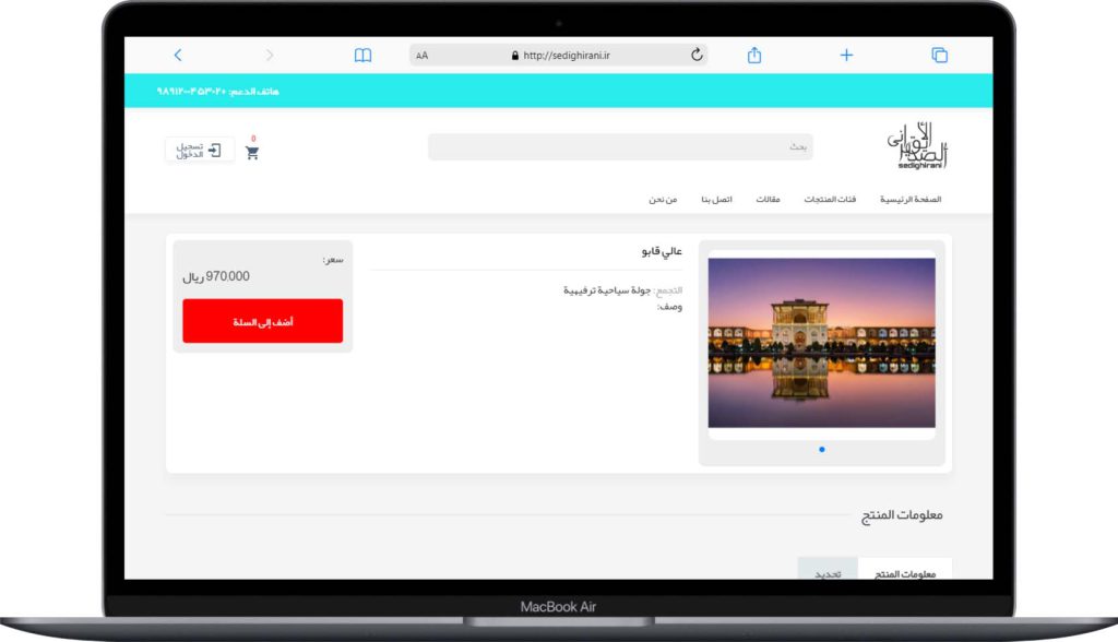نمونه کار طراحی سایت گردشگری به زبان عربی sedighirani