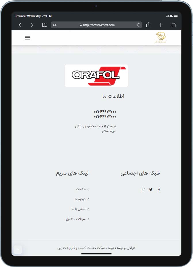 سایت معرفی php طراحی شده برای اتو خسروانی که یک برند نام آشنا میباشد توسط تیم راحت بین برنامه نویسی شده است. این وبسایت با هدف آشنایی بیشتر مشتریان و همچنین پیدا کردن مخاطبان طراحی شده است. اگر هنوز کسب و کار خود را اینترنتی نکرده اید میتوانید با ما تماس بگیرید و ما در زمانی کوتاه شما را به یک فروشگاه اینترنتی تبدیل کنیم.