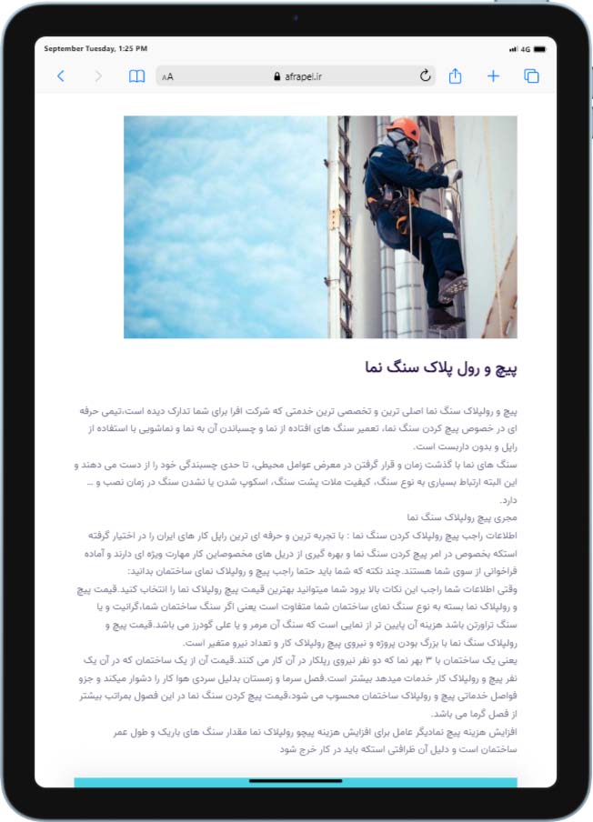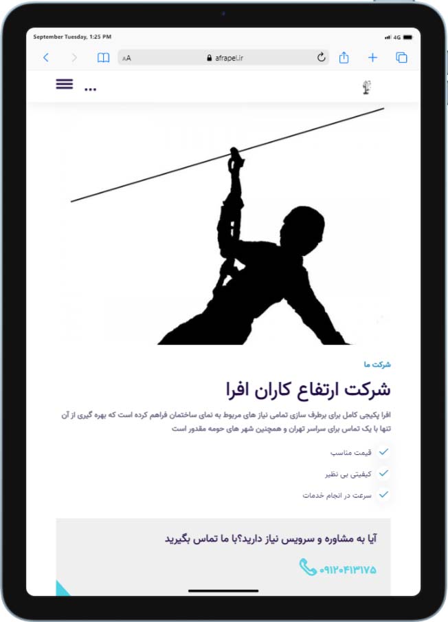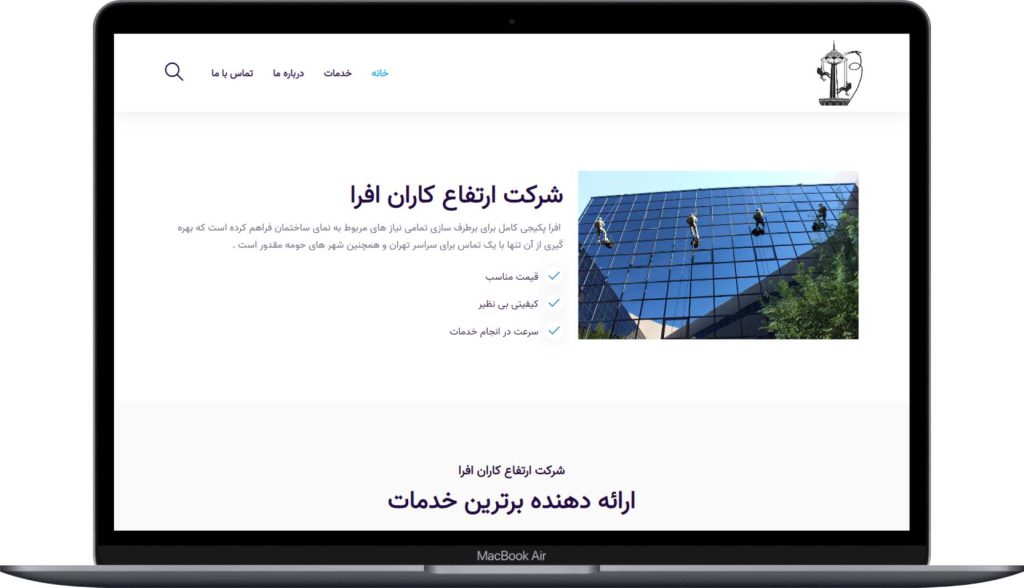 آژانس خدمات کسب و کار راحت بین طراح و مجری سایت این شرکت بوده است. در زیر چند نمونه از صفحات سایت شرکت ارتفاع کاران افرا قابل مشاهده است: