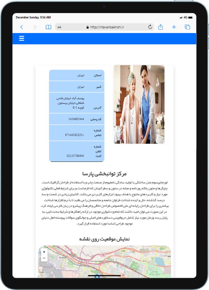 طراحی وب اپ بزرگترین مرکز توانبخشی ایران