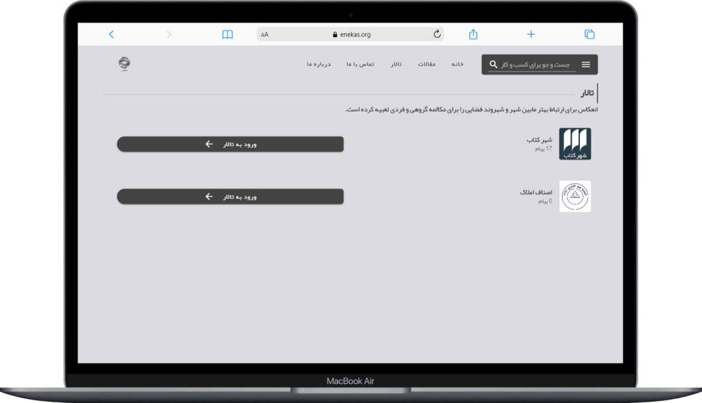 نمونه کار طراحی سایت وب اپلیکیشن معرفی کسب و کار انعکاس
