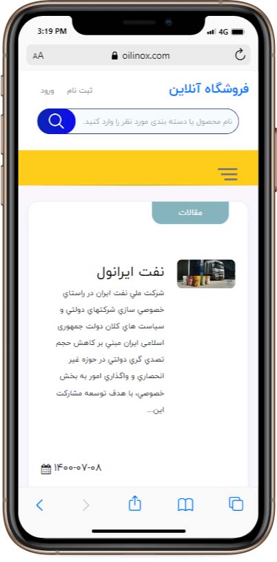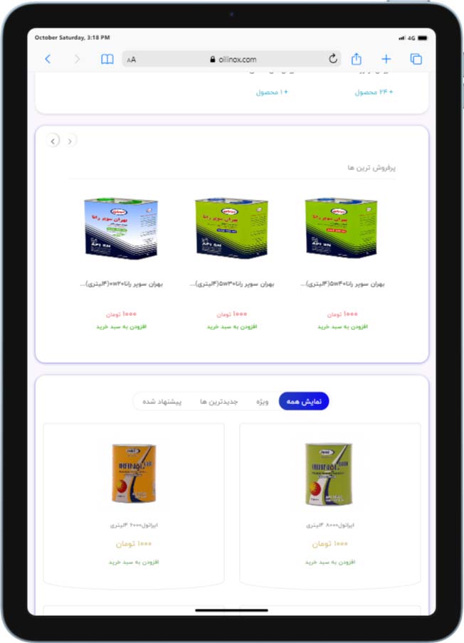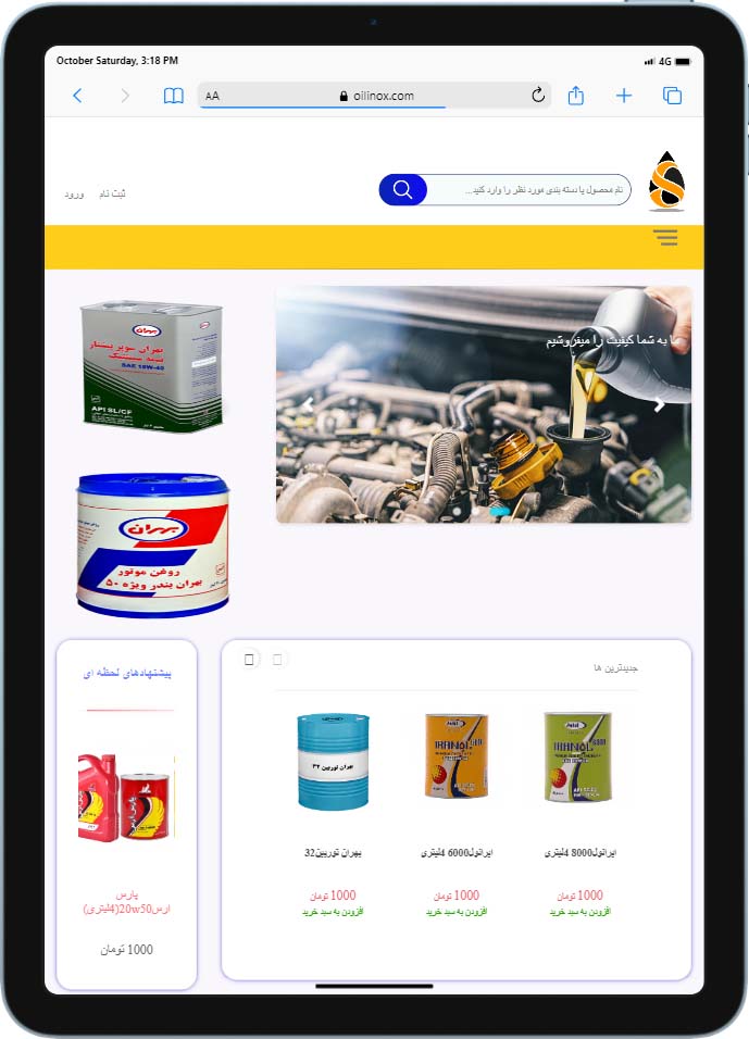طراحی سایت این شرکت، توسط آژانس خدمات کسب و کار راحت بین RahatBin به سفارش مشتری عزیز طراحی گردید. در این سایت، کلیه محصولات مربوط به روغن موتور به تفکیک برند، و مبالغ قابل پرداخت قابل مشاهده است.