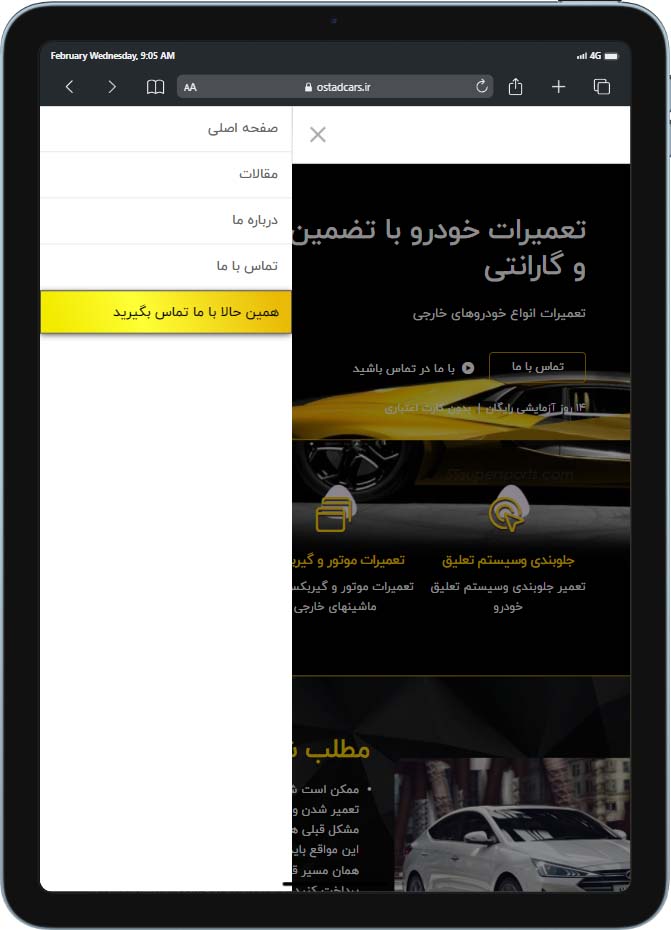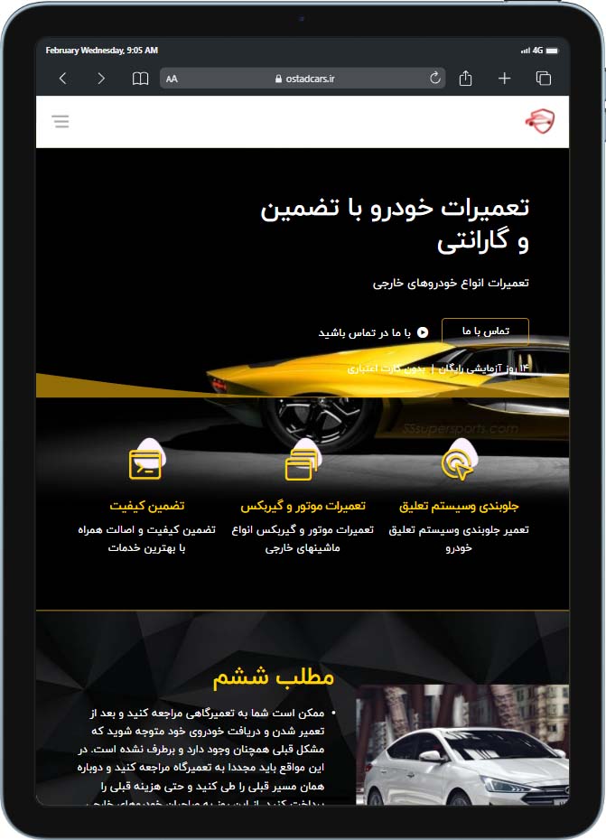 نمونه طراحی سایت تعمیرات اتومیبیل استاد کارز توسط راحت بین یک نمونه کامل برای شمایی است که در این حوزه فعالیت دارید. با داشتن یک وبسایت حرفه ای میتوانید کسب و کارتان را گسترش دهید و به درآمد زیادی دست یابید. برای گسترش ایده و حرکت به سوی اینترنتی شدن کسب و کارتان میتوانید روی توانایی های آژانس راحت بین حساب کنید. وب سایت های تعمیرات طراحی شده در راحت بین بیش از صدها مورد است که در قسمت نمونه کارها قابل مشاهده هستند. برای دریافت مشاوره رایگان با ماتماس بگیرید.