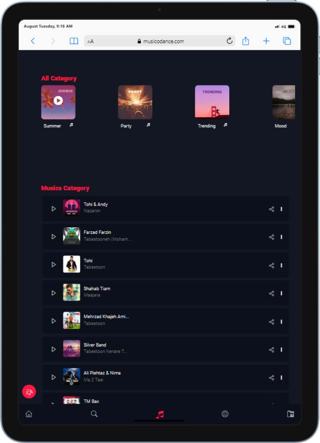 یکی از بهترین وبسایت های پخش آهنگ های روز و قدیمی است.  با عضویت در آن میتوان به تمامی آهنگهای ایرانی و خارجی دست پیدا کرد. همچنین برای راحتی بیشتر میتوانید اپ مربوطه را از گوگل پلی یا اپل استور دانلود کنید تا همیشه به آن دسترسی داشته باشید.