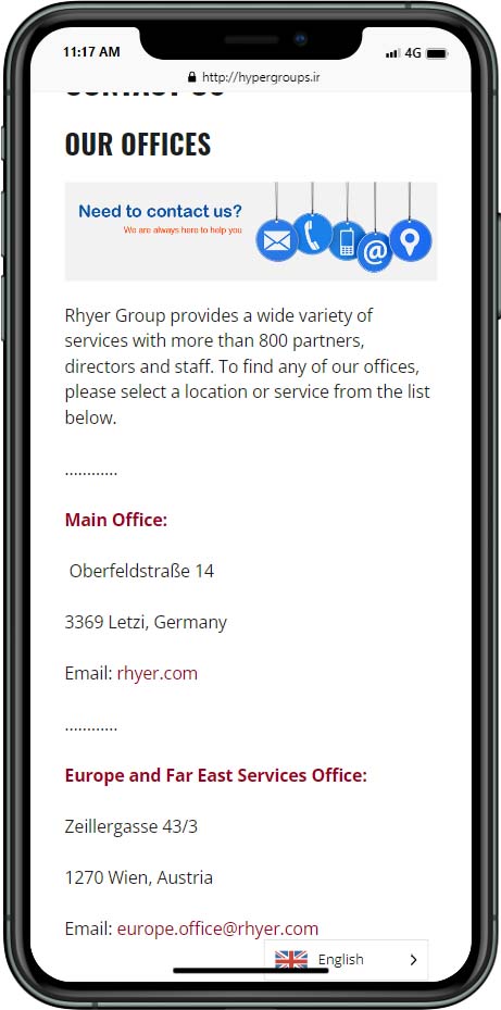 طراحی سایت با هر زبانی که بخواهید در تخصص ماست. فقط کافیست خواسته خود را با ما در میان بگذارید. ما برای شما در کوتاهترین زمان ممکن یک سایت حرفه ای طراحی خواهیم کرد. یکی از نمونه کارهای طراحی سایت شرکتی انجام شده توسط برنامه نویسان راحت بین گروه رایر میباشد. این سایت به دو زبان انگلیسی و روسی طراحی شده است. تخصص این گروه در زمینه مشاوره کاهش ریسک میباشد. چند نمونه از صفحات این وبسایت در زیر قابل مشاهده است.