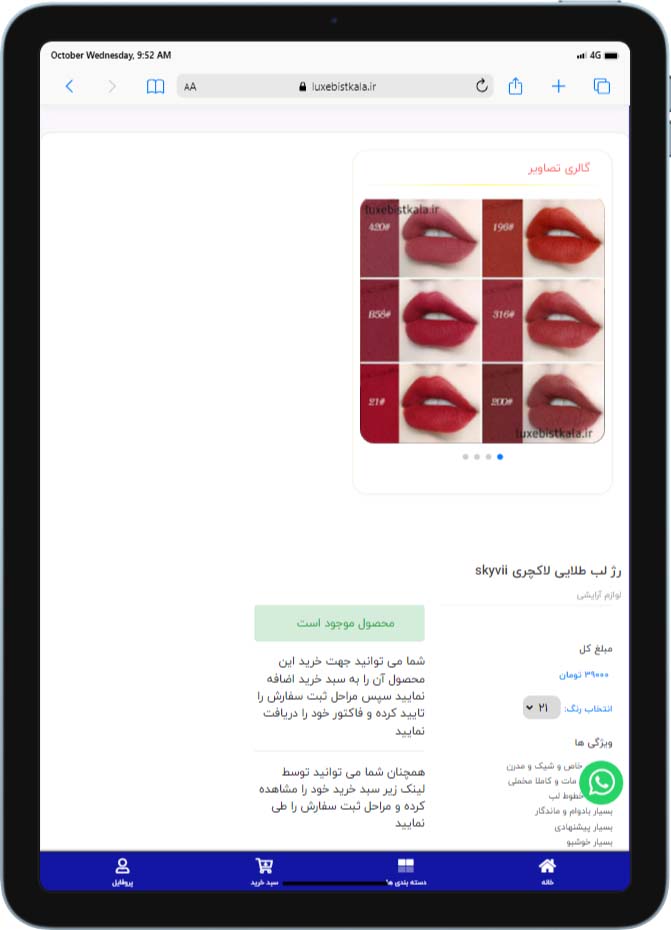 نمونه کار طراحی وب اپلیکیشن لوازم آرایشی