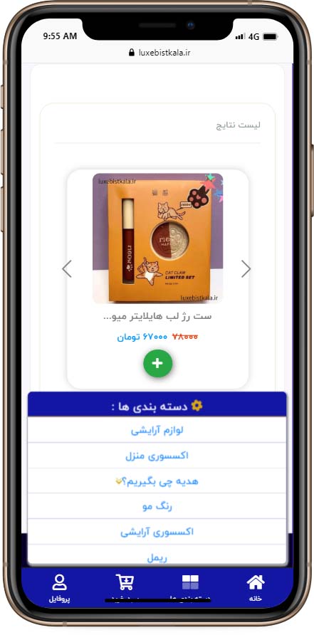 نمونه کار طراحی سایت و اپلیکیشن لوازم آرایش