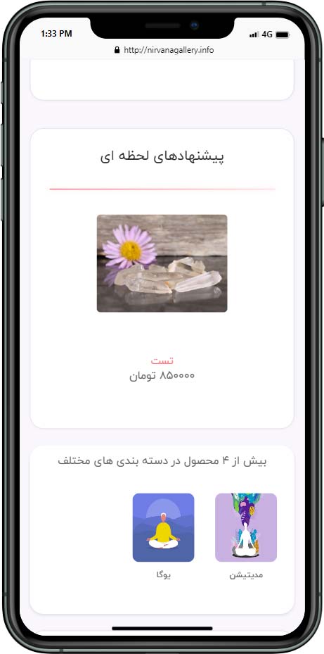طراحی وبسایت فروشگاهی نیروانا یکی از نمونه کارهای گروه راحت بین است. این فروشگاه در حوزه فروش انواع لوازم یوگا فعالیت دارد. اگر شما هم تمایل به داشتن یک سایت حرفه ای مرتبط با کسب و کارتان را دارید میتوانید با مشاوران ما تماس بگیرید. همچنین برای مشاهده نمونه کارهای طراحی سایت انجام شده توسط تیم برنامه نویسی راحت بین وارد صفحه اصلی شوید. چند نمونه از صفحات این وبسایت قابل مشاهده است: