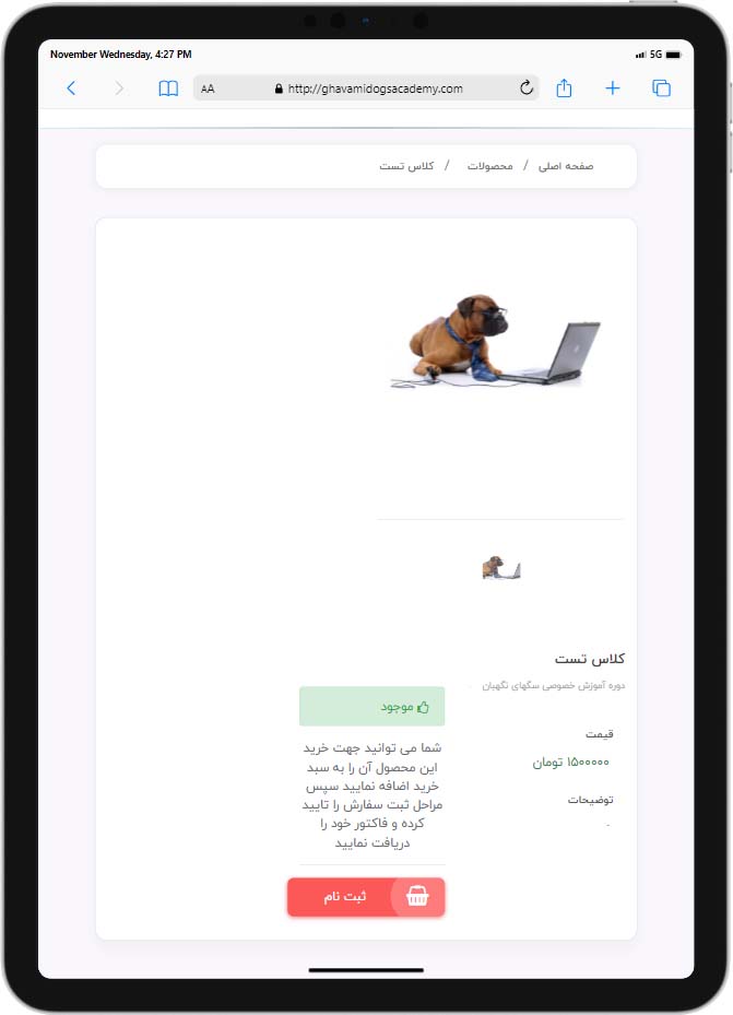 نمونه کار طراحی سایت فروشگاهی قوامی یک وبسایت طراحی شده برای پت شاپ و تربیت سگ است. در این وب سایت وبینارها و کلاس آموزش های کاربردی و مفیدی بارگزاری شده است. طراحی سایت قوامی بر عهده راحت بین بوده است.