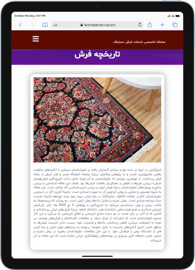 نمونه کار طراحی سایت و اپلیکیشن فروش فرش و قالی