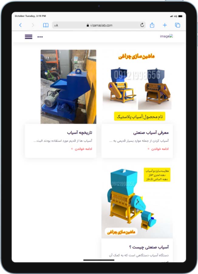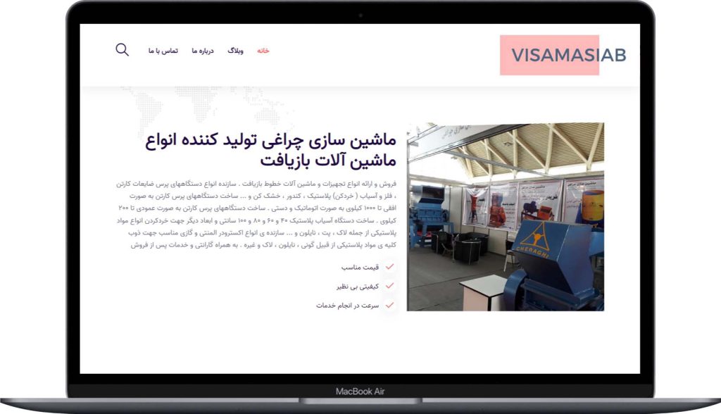 نمونه کار طراحی سایت معرفی فروش انواع ماشین آلات بازیافت ویسام آسیاب