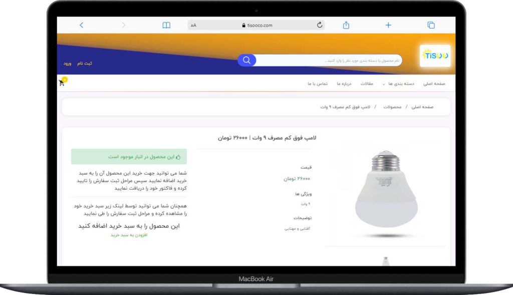 نمونه کار طراحی سایت tisooco توسط راحت بین طراحی شده است. این سایت یکی از صدها نمونه کار طراحی سایت لوازم برقی توسط این گروه است.
