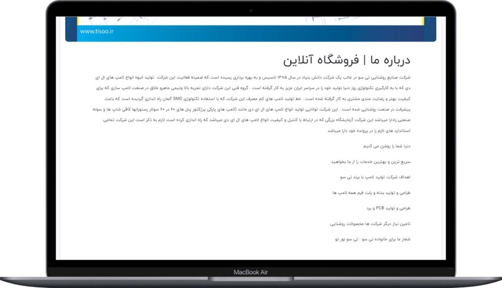 نمونه کار طراحی سایت لوازم برقی تیسوکو