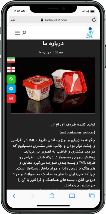 طراحی سایت تولیدی صدراپلاست بر عهده آژانس خدمات کسب و کار راحت بین RahatBin بوده است. در زیر چند نمونه از صفحات سایت این تولیدی قابل مشاهده است: