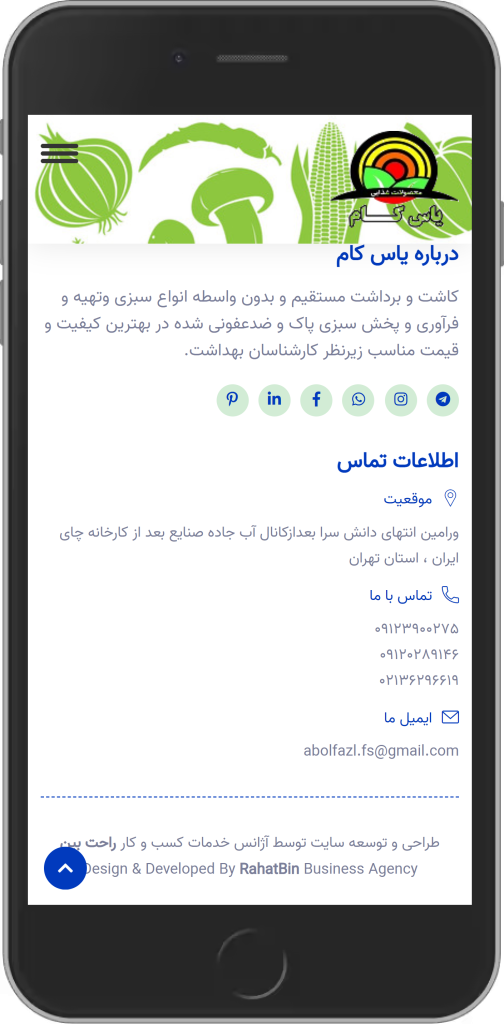 آژانس خدمات کسب و کار راحت بین با استفاده از برنامه نویسان مجرب خود، به طراحی سایت برای این شرکت اقدام کرده است. داخل این سایت انواع اخبار و مقالات در مورد سبزیجات در اختیار علاقه مندان قرار گرفته است.