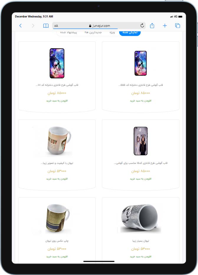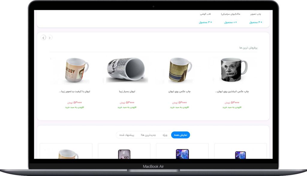 نمونه کار طراحی سایت قاب گوشی و ماگ