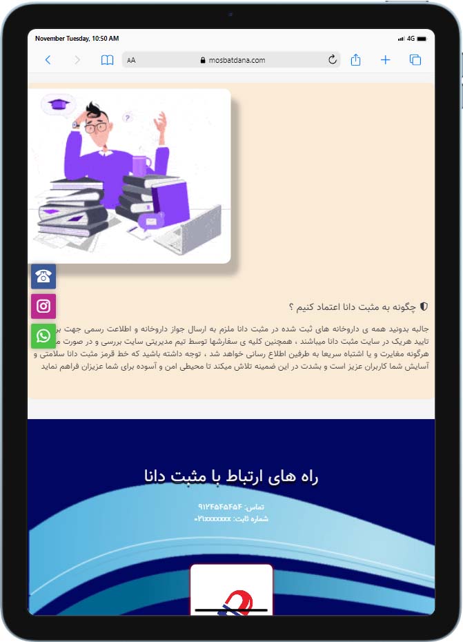 طراحی وب اپلیکیشن مثبت دانا برعهده تیم برنامه نویسی راحت بین بوده است. این فروشگاه اینترنتی برای فروش آنلاین انواع داروهای داروخانه ای میباشد. شما میتوانید با بارگزاری نسخه پزشک در داخل سایت، داروی مورد نظر خود را سفارش داده و پس از تائید، آن را دریافت نمائید. اگر شما هم میخواهید کسب و کار خود را توسعه دهید، یک سایت حرفه ای طراحی کنید. به شما قول میدهیم با طراحی وب اپلیکیشن یا یک سایت میتوانید درآمد خود را دو چندان کنید.